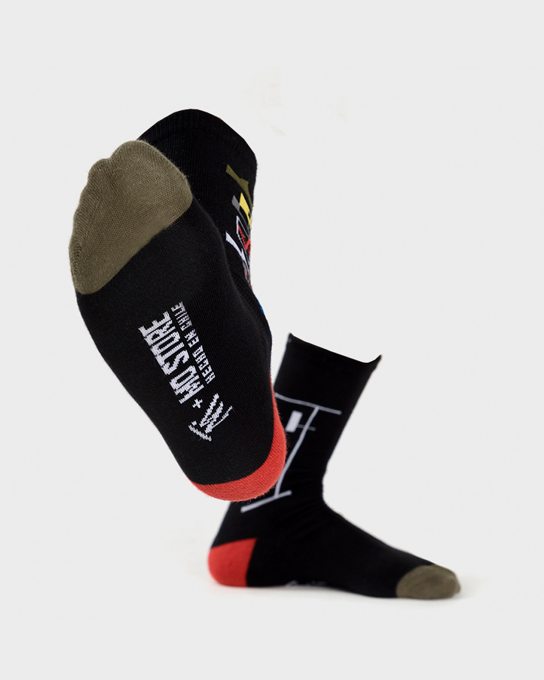 Calcetines unisex tejidos en bambu con diseño en colaboracion con el arquitecto y diseñador Matias Ruiz, las formas son una abstraccion de sus obras en arquitectura y diseño de objetos, como la iconica silla M100 y la Casa el Vigilante.