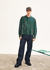 Camisa cuello mao, con abotonadura central, hombros levemente caídos, manga larga, largo crop justo debajo de la pretina del pantalón.