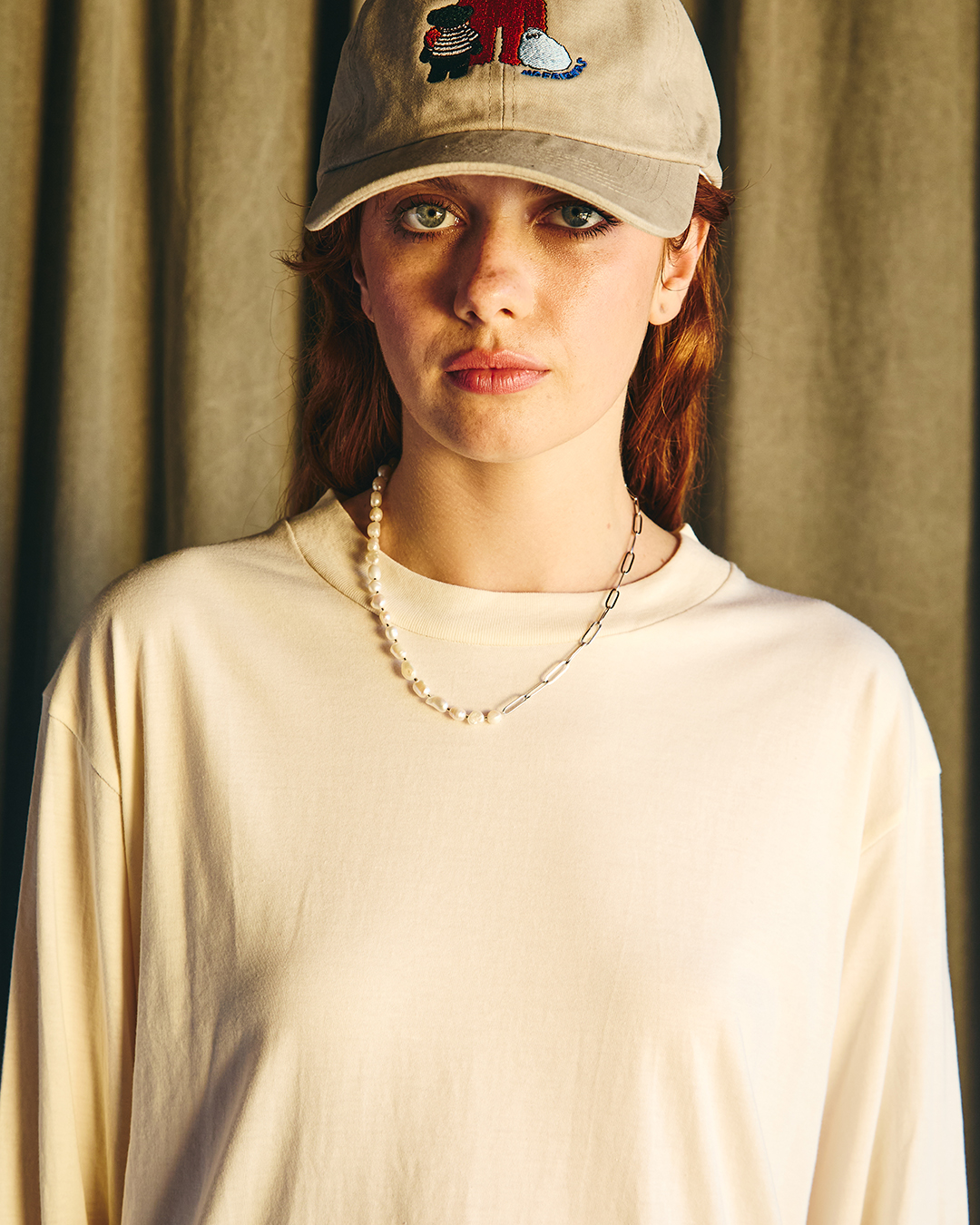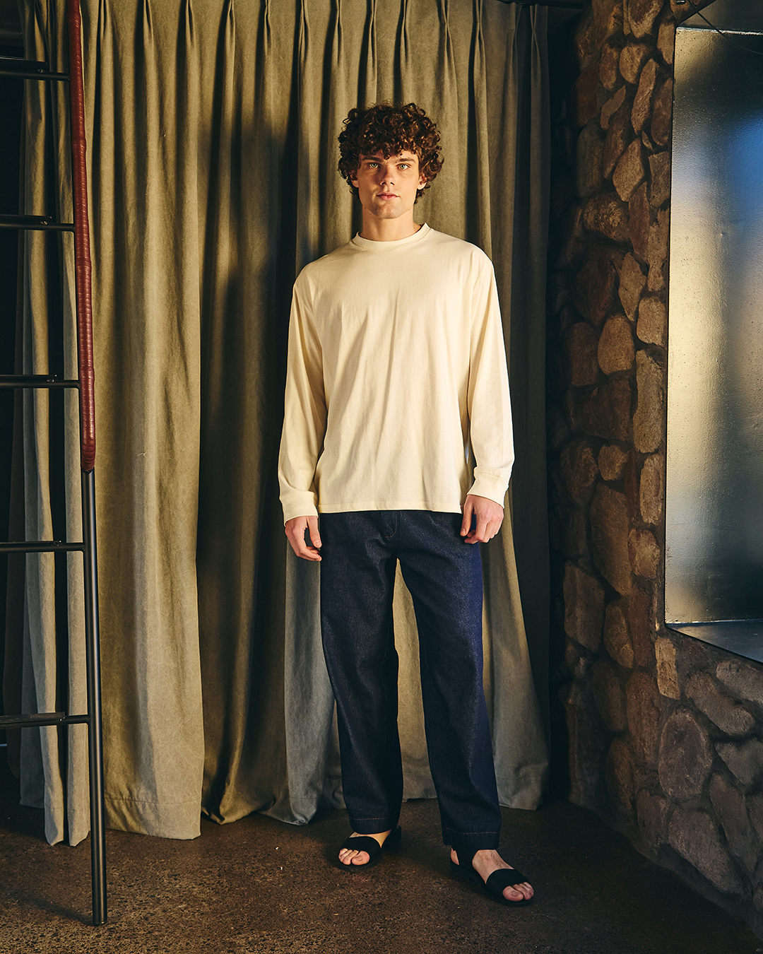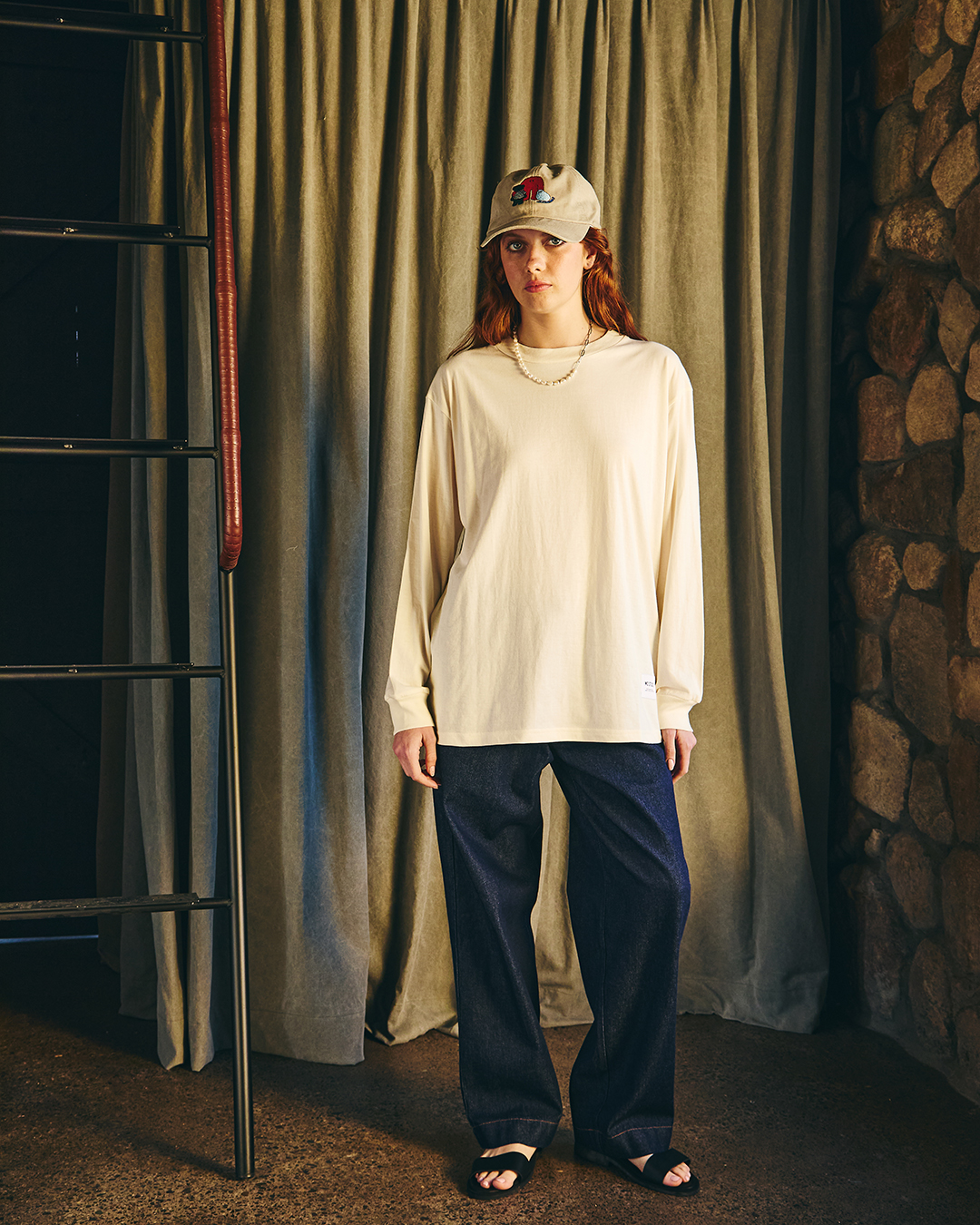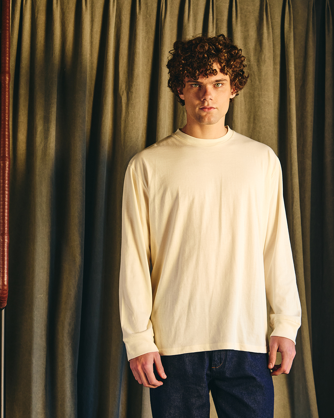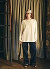 Polera manga larga, cuello redondo, sisa amplia, bordado lateral tono sobre tono.
