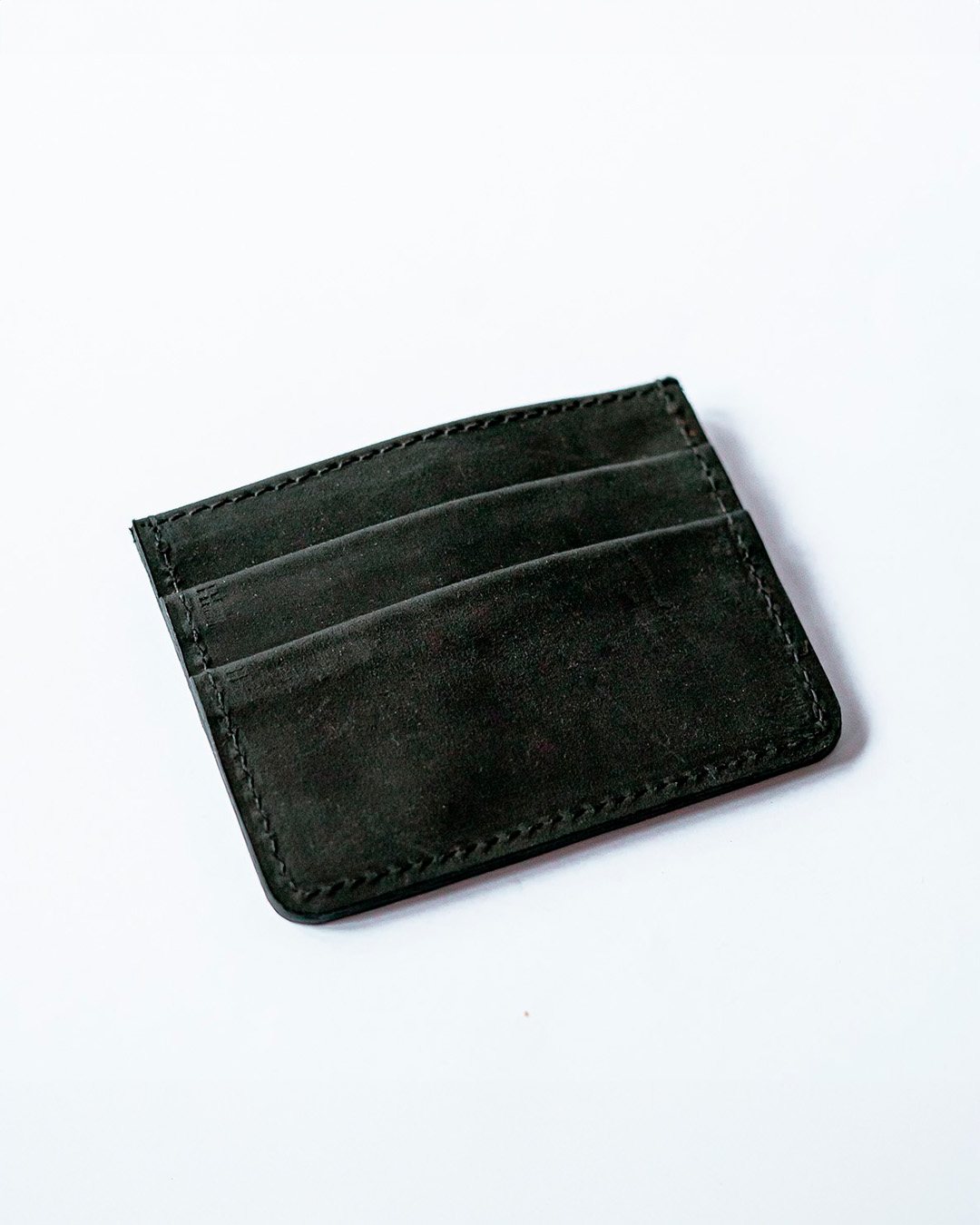 Tarjetero de cuero 100%. Borde redondeado con costuras al tono. Doblado de bolsillos sin costura. Logo con cuño.